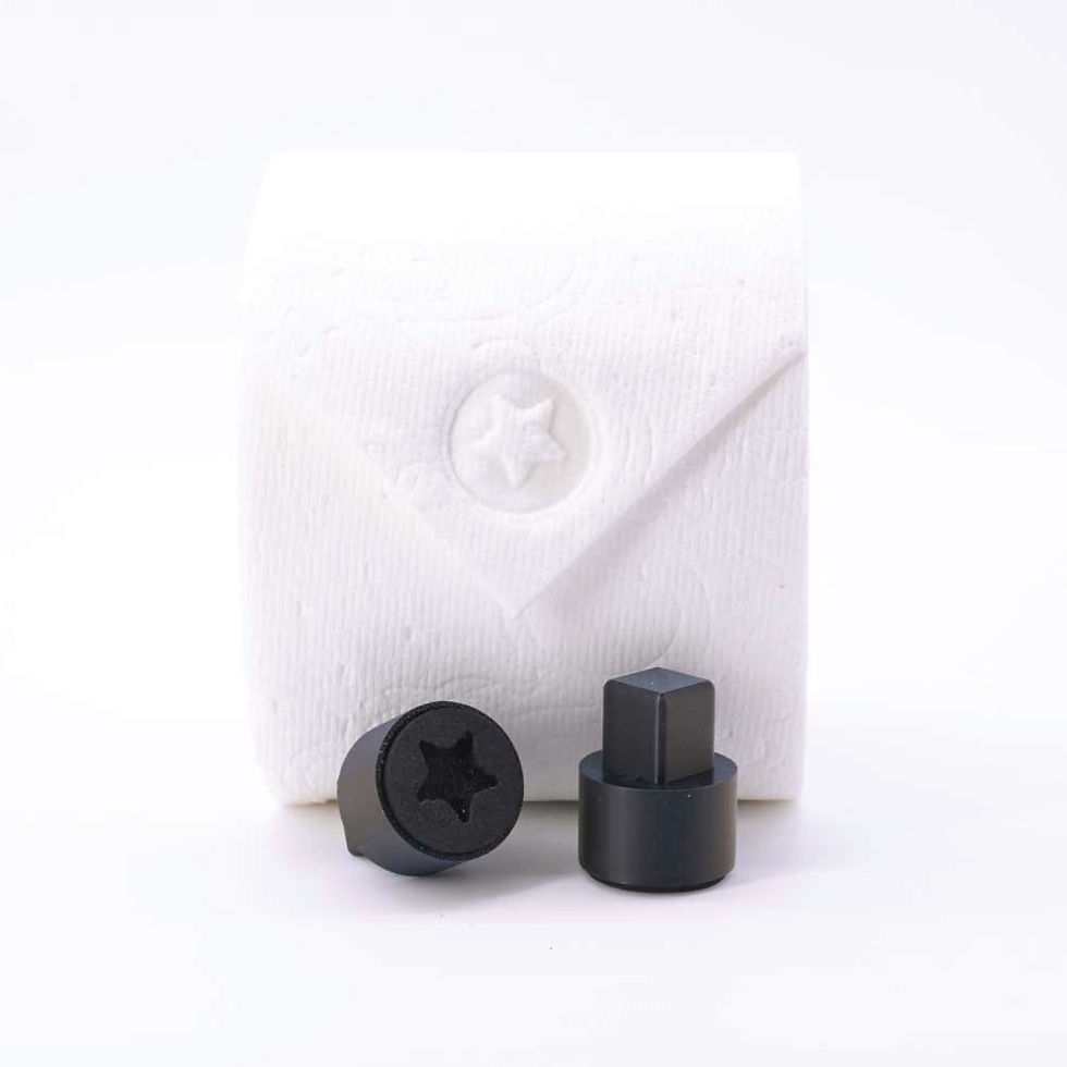 Our toilet paper stamp is a simple, reusable tool designed to leave a clean, professional impression. It creates a small symbol, such as a dog paw, heart, or smiley face, onto the paper as a final touch after a bathroom has been cleaned. Just like folding the end of a toilet paper roll into a triangle, stamping adds an elevated touch that guests and clients notice and appreciate.
